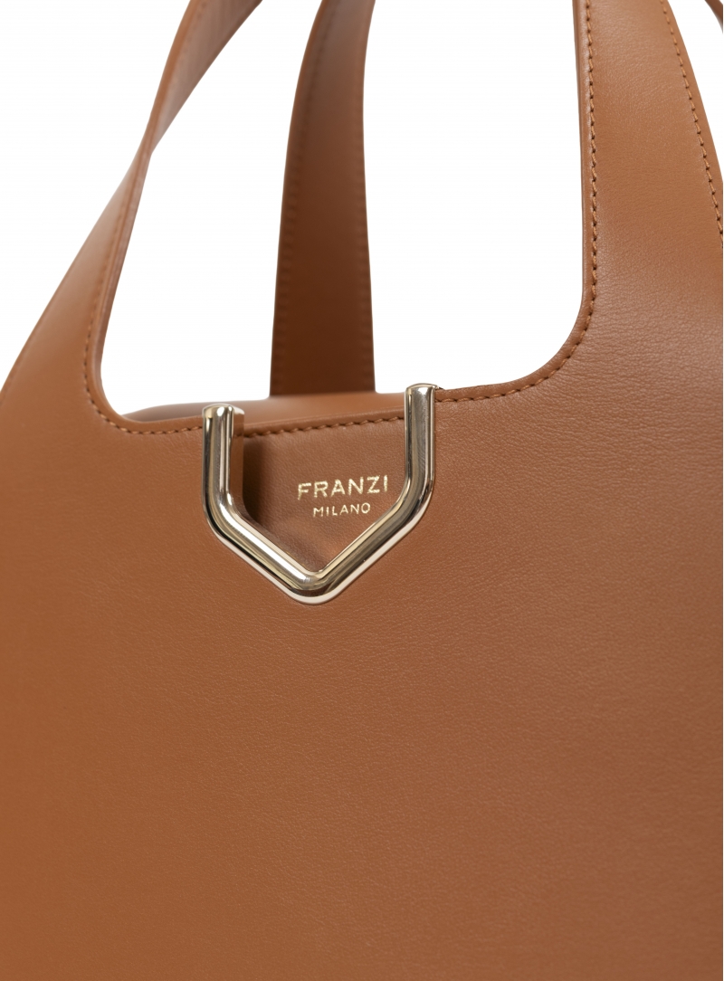 The technical virtuosity and the attention to detail that distinguish every Franzi creation have given life to an extremely versatile model, perfect for a daily use, that can be carried by hand, on the arm, and cross-body, thanks to the adjustable leather shoulder strap.