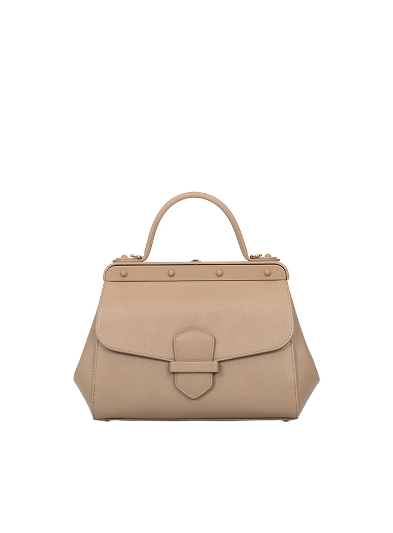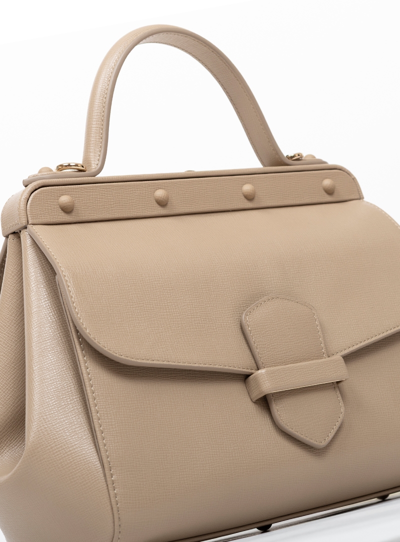 Designed for the modern woman, Margherita is a handbag with elegant and sinuous lines. It draws inspiration from the world of travel, recalled by the clasp and the bar with rivets, but with a fresh and contemporary soul.