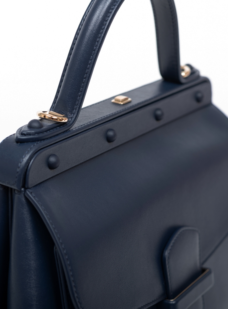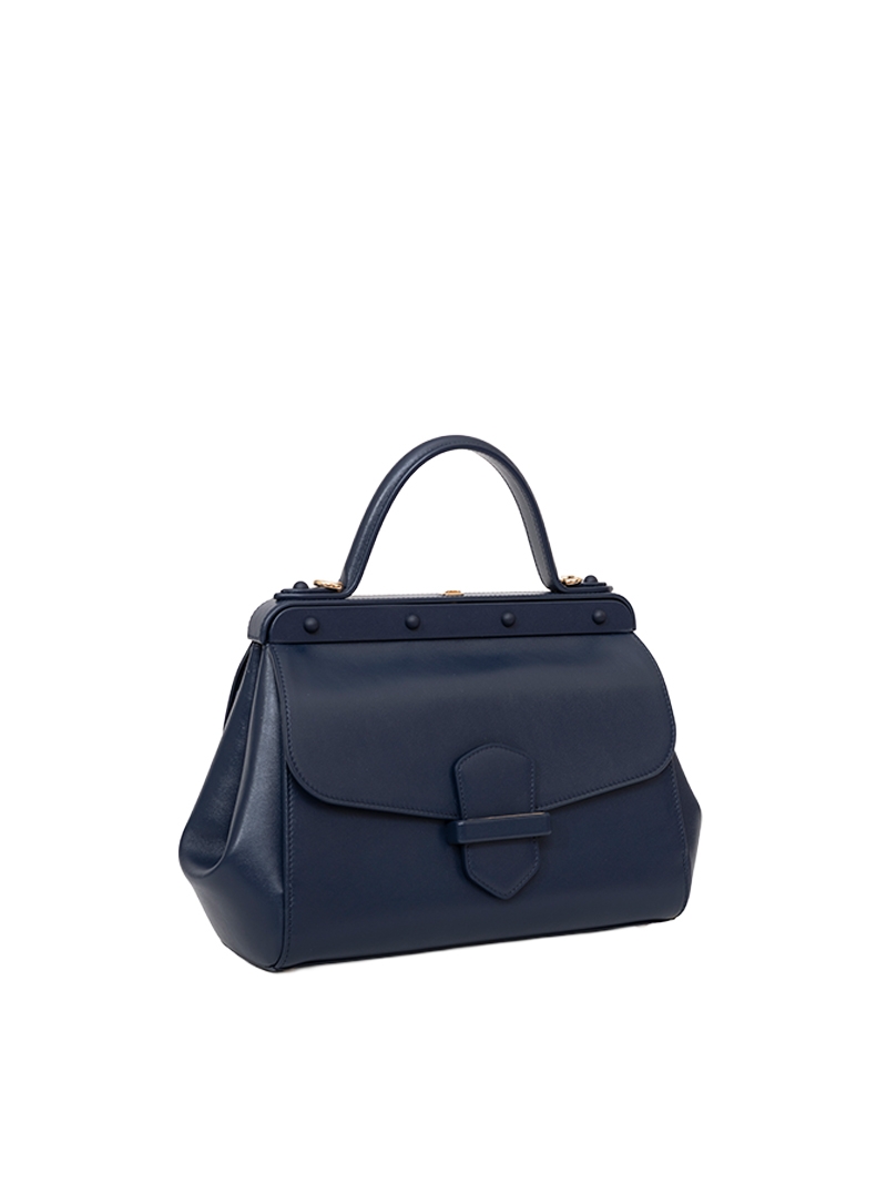 Crafted with a modern and fresh touch, the medium-sized Margherita in Night Blue is made of smooth calfskin and lined with refined neutral fabric.