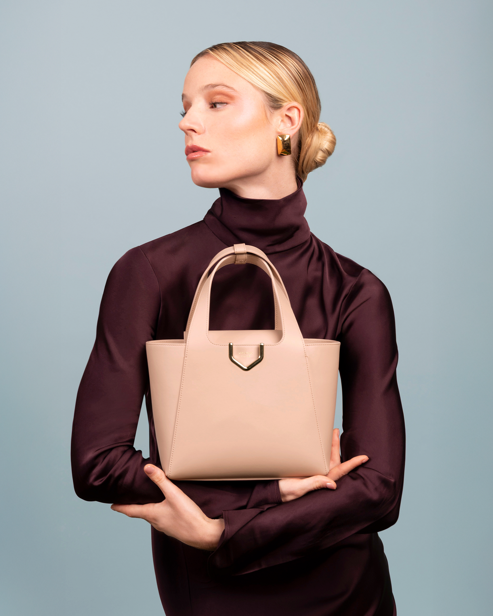 With a sleek, minimalist design and a Champagne Gold metallic touch on the front - a nod to Franzi's iconic dagger-shaped clasp - Carla combines refined elegance with practicality while reinterpreting the brand's timeless aesthetic