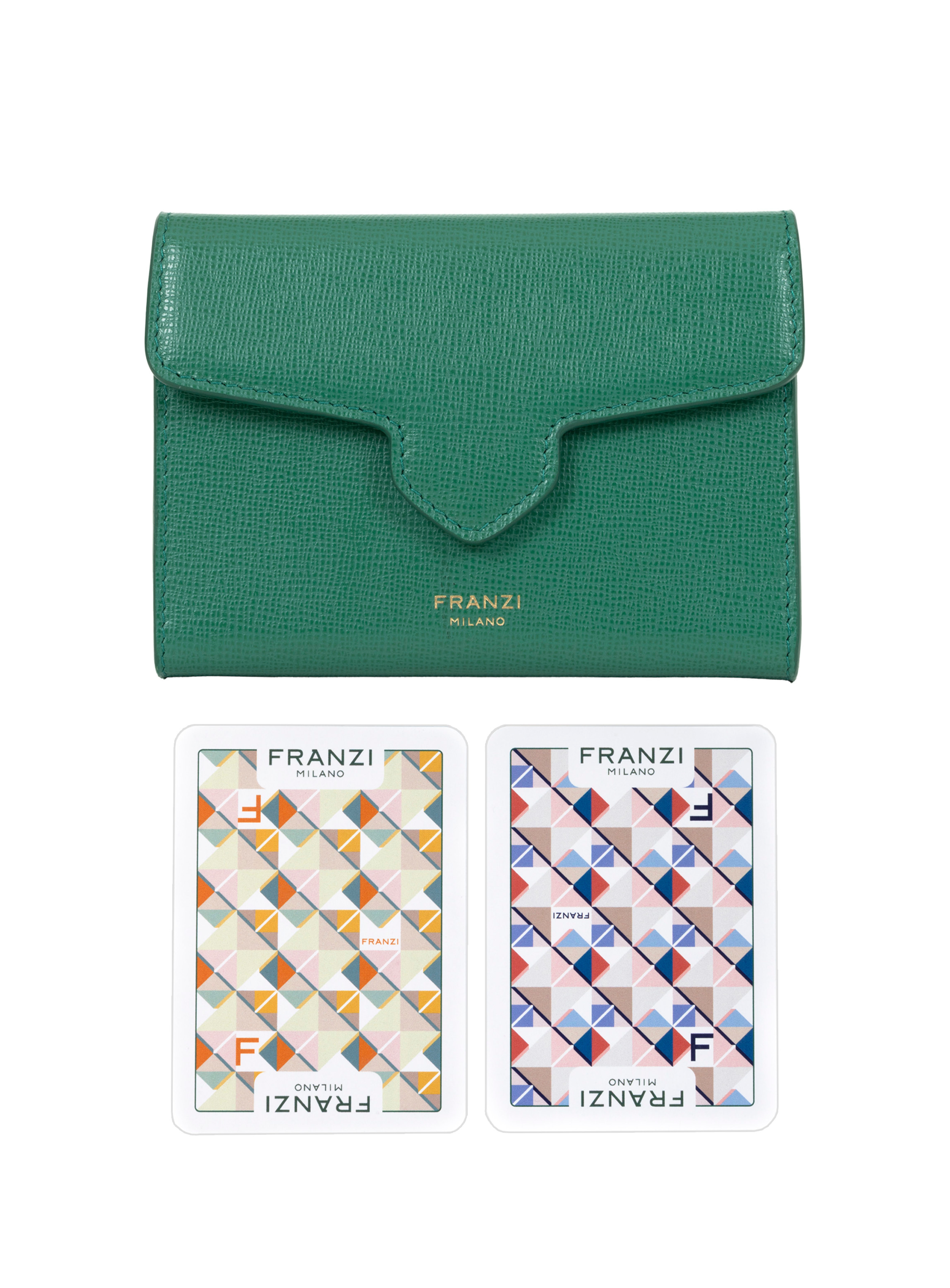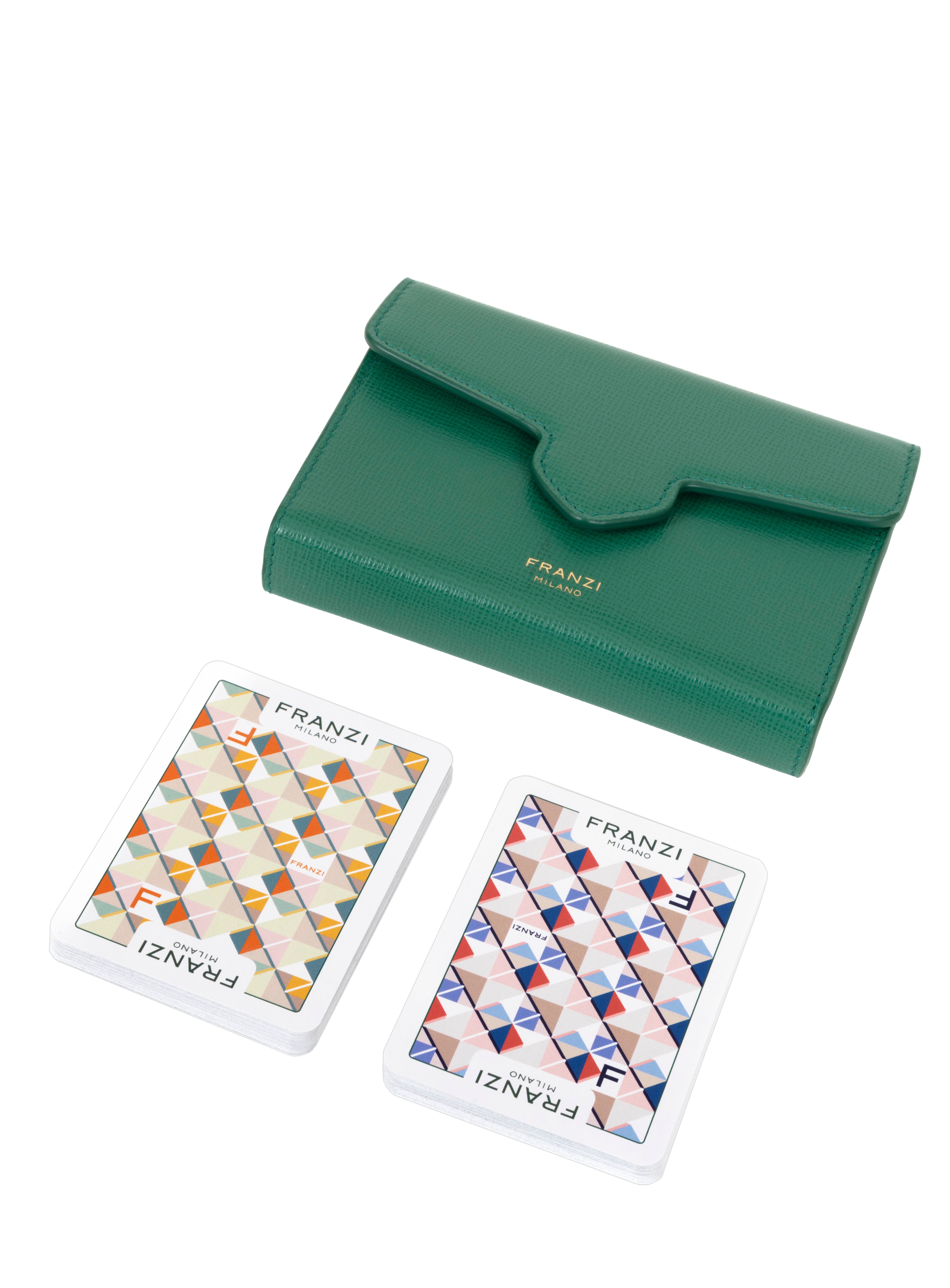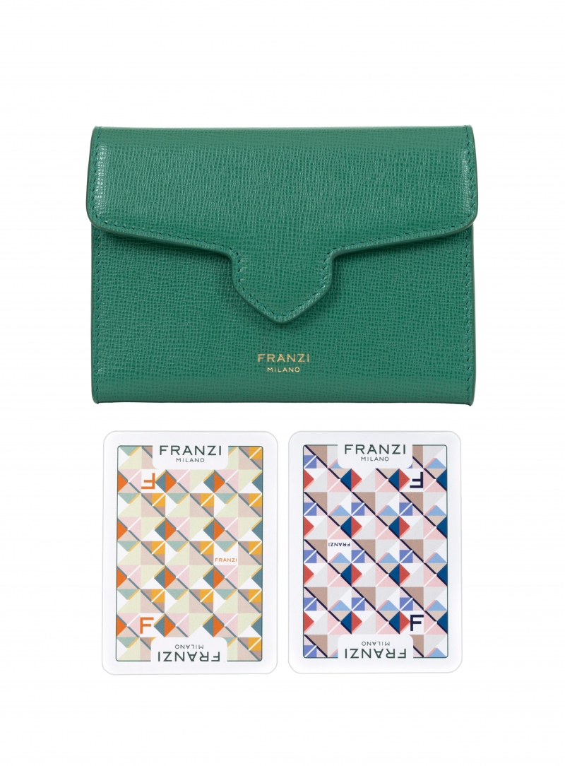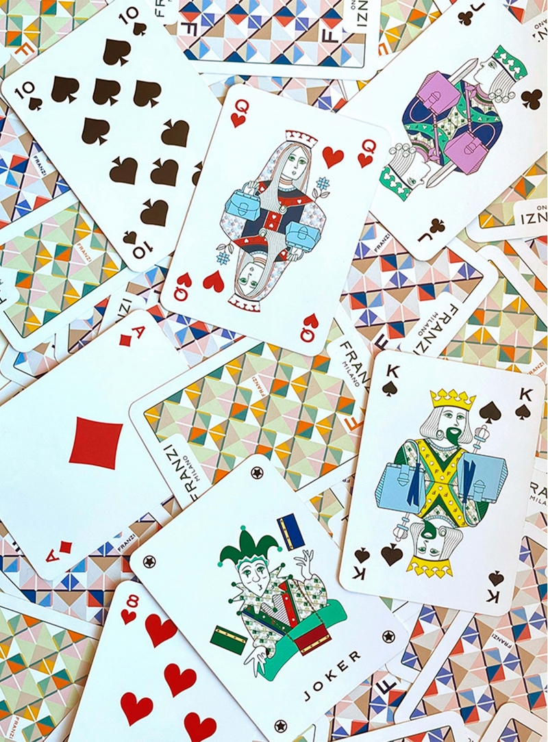 Il Playing Card Case è concepito per custodire le esclusive carte da gioco Franzi, realizzate in collaborazione con Modiano, eccellenza italiana nel mondo del gioco. Sul retro, le carte sono impreziosite dall’iconico motivo Pavé, mentre sul fronte le figure sono reinterpretate secondo l’estetica Franzi indossando le nostre creazioni, in un dialogo raffinato tra tradizione e identità del brand.